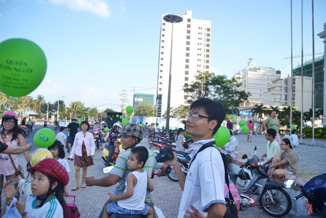 Tổng hợp hình ảnh hai blogger Mẹ Nấm - Nguyễn Ngọc Như Quỳnh, Binh Nhì - Nguyễn Tiến Nam cùng bạn bè phân phát Bản Tuyên ngôn Quốc tế Nhân Quyền cùng những quả bóng bay tại Nha Trang